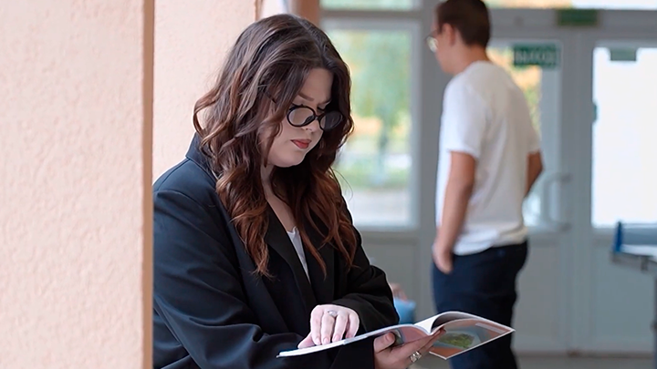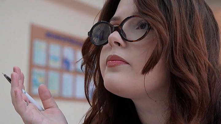 Арына Пехцерава ў школе. Скрыншот відэа: тэлеканал «Беларусь 1» (медыя кантралюецца беларускімі ўладамі)