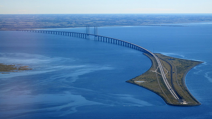 Эрэсунскі мост-тунэль, які злучае Данію і Швецыю праз праліў Эрэсун. Фота: wikipedia.org